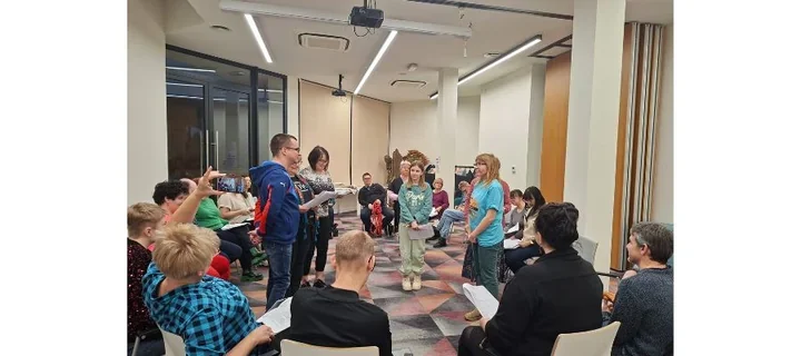 Pod kierunkiem reżyser Edyty Trojańskiej-Urbanik uczestnicy skupili się na tym, co w teatrze najważniejsze - pracy z tekstem i przekształcaniu słów w żywe reakcje. Ćwiczenia, które widziałem, nie były suchymi powtórkami scenariusza, lecz warsztatami pracy nad ciałem, mimiką i rytmem wypowiedzi. Widać było, że to nie tylko próba do premiery, ale też przestrzeń, gdzie każdy krok sceniczny pomaga lepiej poznać siebie i kolegów z grupy 😊.