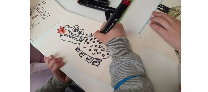 Po spektaklu przyszedł czas na warsztat - z kartonu powstały miniaturowe teatrzyki, a zadaniem maluchów było narysować do nich własne historie. W ruch poszły kredki, mazaki i fantazja - powstały nowe, zaskakujące wersje Smoka Wawelskiego i barwne wariacje na temat Czerwonego Kapturka. Własnoręcznie wykonane opowieści dzieci zabrały ze sobą do przedszkola, gdzie będą grać, opowiadać i wymyślać kolejne przygody 🎨✂️.